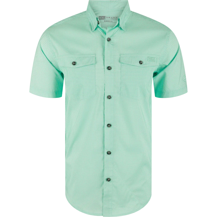 Frat Gingham Check Button-Down Short Sleeve Shirt - Beach Glass Tonal